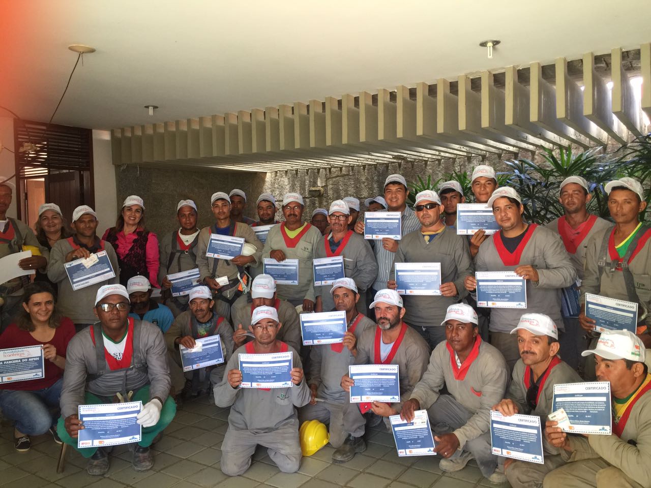 Até o presente momento foram capacitados 398 operários da construção civil, em obras distintas, esperando-se atingir a marca próxima dos 500 operários treinados até o final do projeto. Na ocasião dos treinamentos os interessados recebem um boné, um selo para o capacete e o certificado de participação no treinamento. Já a obra recebe o DVD do vídeo aula e um certificado de parceria.