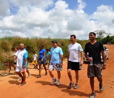 O Prefeito Júnior Rocha, acompanhado de vereadores de Goianinha, caminhou mais de seis quilômetros, em estrada de terra, na manhã desta quarta-feira (22), da BR-101 até a comunidade do Catu.