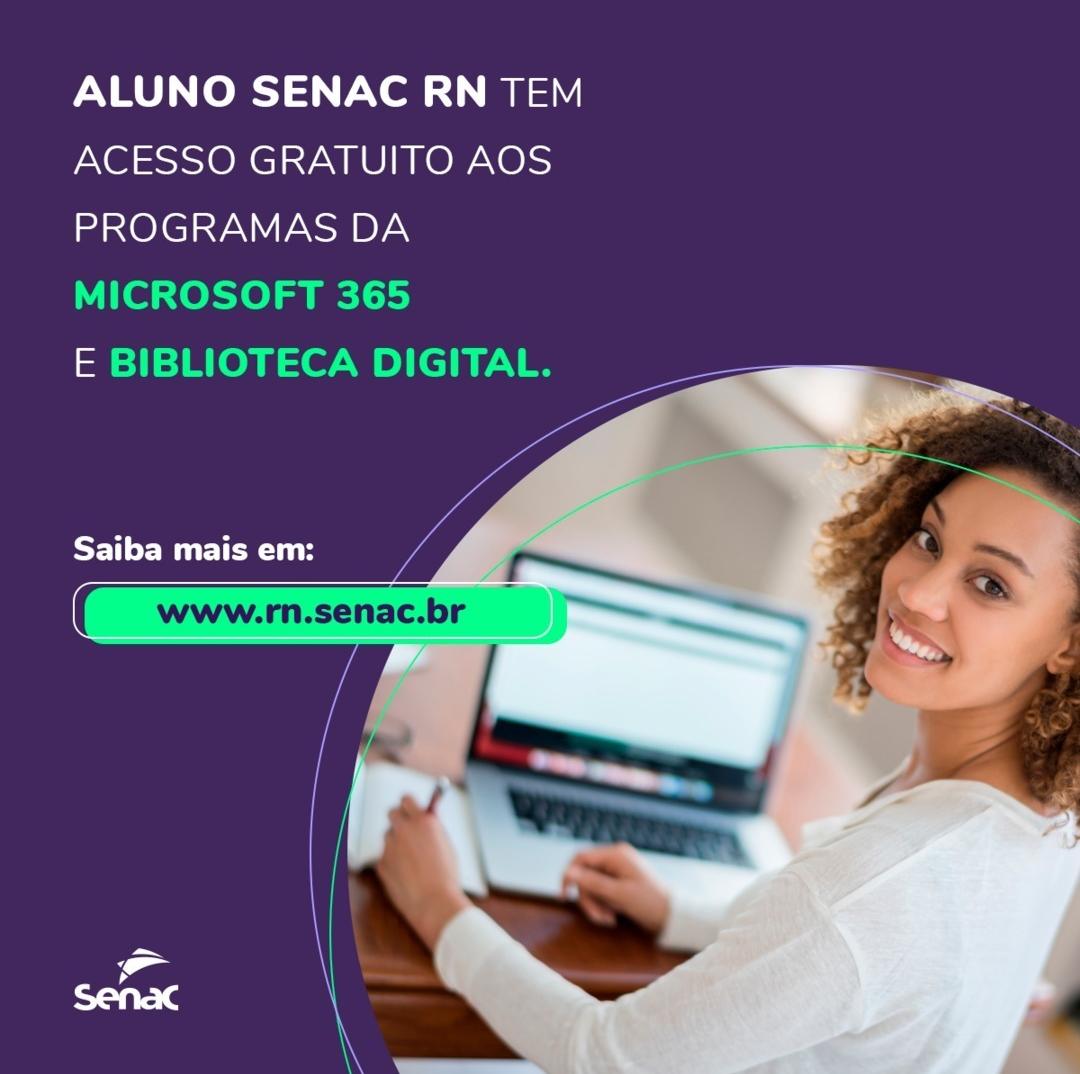Referência no ensino profissional, o Senac RN tem como um de seus diferenciais oferecer acesso gratuito a plataformas tecnológicas que visam contribuir com o aprendizado e desenvolvimento acadêmicos de seus alunos e colaboradores.