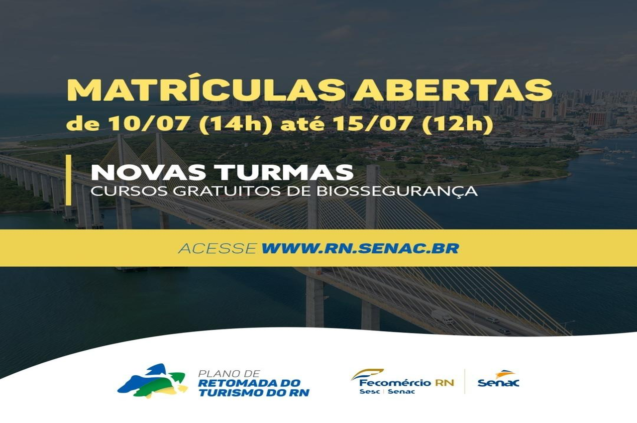 Trabalhadores, Microempreendedores Individuais (MEIs), microempresas e empresas de pequeno porte que atuam no setor do turismo do Rio Grande do Norte podem contar com o Senac e Sebrae para capacitações gratuitas em biossegurança, voltadas ao retorno das atividades pós-Pandemia da Covid-19. A participação nas qualificações permitirá que as empresas se habilitem a receber Selo que está sendo construído pelo Governo do Estado, com o objetivo de atestar os padrões de qualidade implementados nesses empreendimentos.