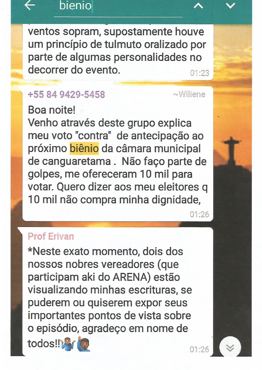 Conforme a foto acima, observamos denúncias (aceitas pelo Ministério Público) que levantam grave suspeita em relação à eleição da vereadora como presidente da câmara municipal.