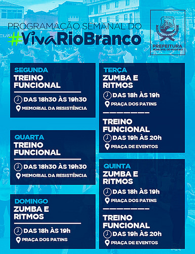 A programação do Viva a Rio Branco foi intensificada. Além das atividades aos domingos, os frequentadores do Corredor Cultural poderão participar de aulas e treinos no decorrer da semana.