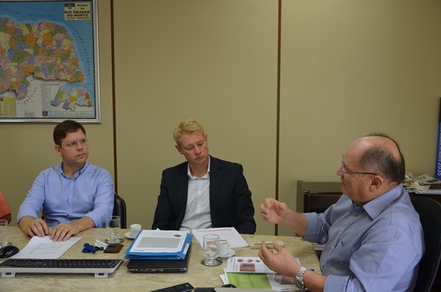 Técnicos alemães que representam instituições de pesquisa e difusão de tecnologia estiveram nesta sexta-feira (16), na Casa da Indústria, para apresentar projetos de formação profissional e incentivo ao desenvolvimento sustentável. O vice-presidente da FIERN, Pedro Terceiro de Melo, e o presidente do Sindicato da Indústria Cerâmica do RN (Sindicer-RN), Vargas Soliz, receberam o chefe do Departamento de Tecnologias Ambientais do Instituto de Agroecologia da Alemanha (Agroscience), Thorsten Pollatz, e o diretor da diretor da Handwerkskammer, Karel Kriz.