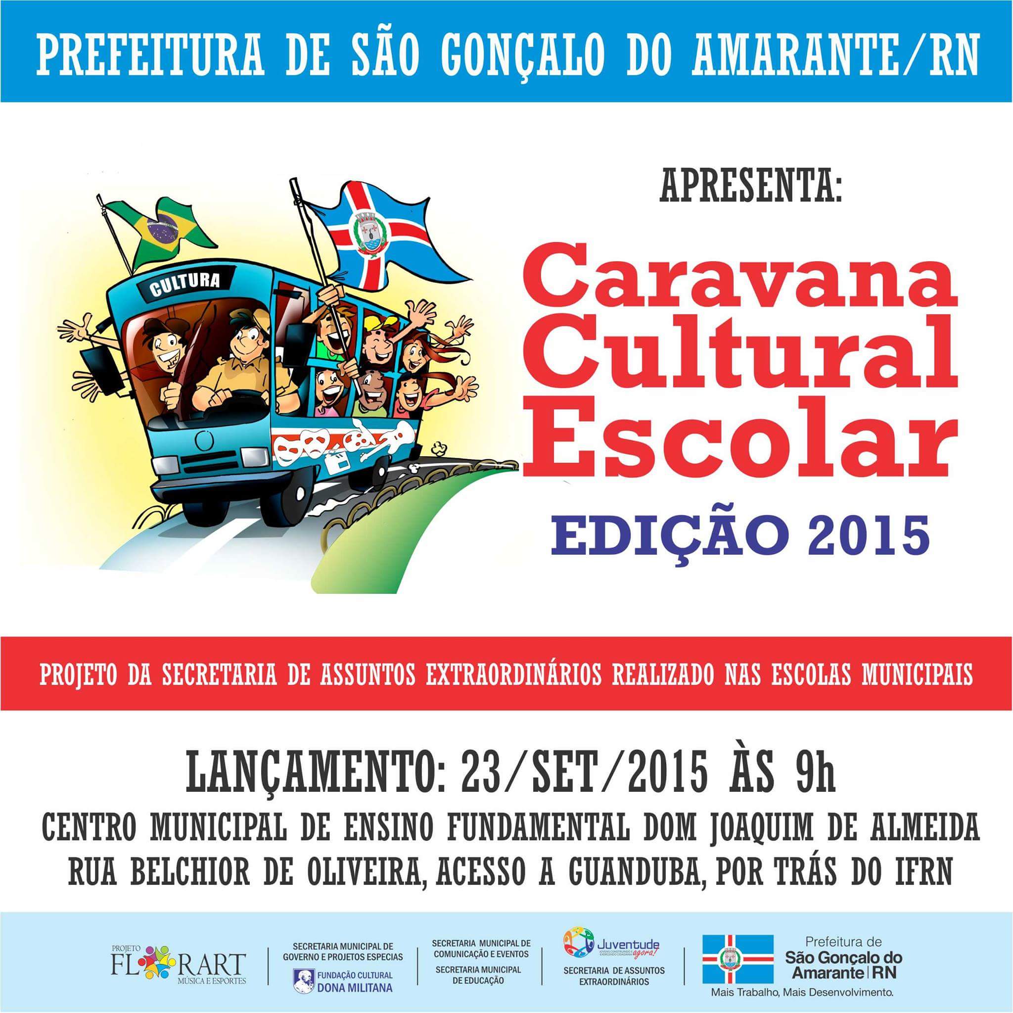 A Edição 2015 do Projeto “Caravana Cultural Escolar ” está sendo lançada hoje (23), no Centro Municipal de Ensino Fundamental Dom Joaquim de Almeida.