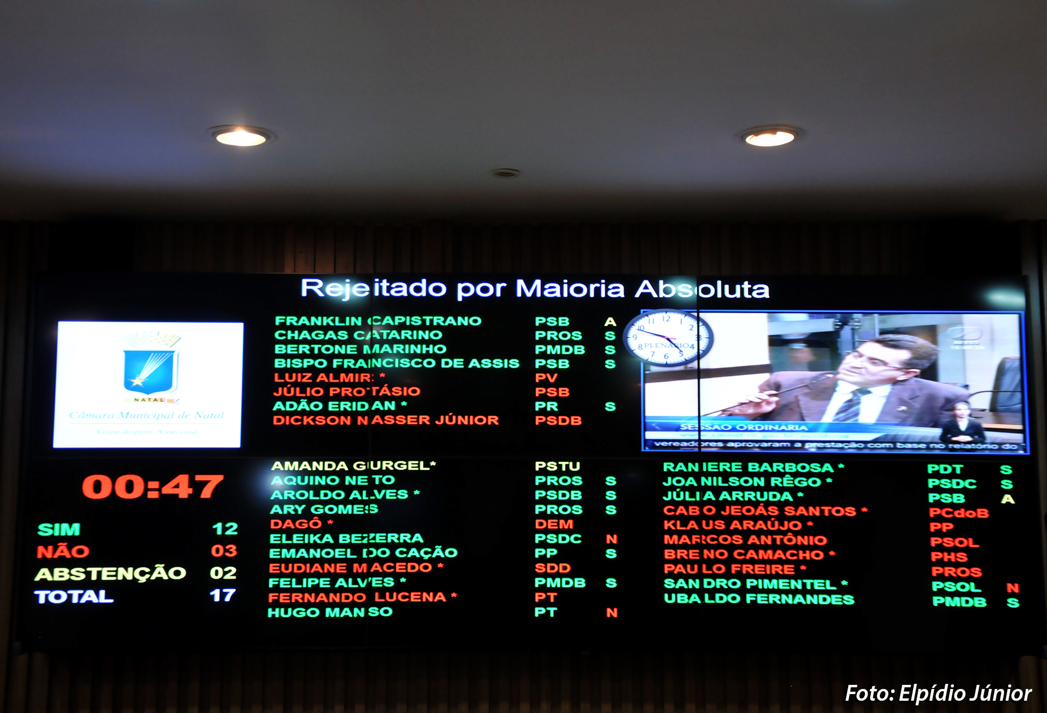 A Câmara Municipal de Natal (CMN) manteve nesta quinta-feira (10) veto do Executivo a um projeto de lei que previa modificar o funcionamento dos semáforos de Natal, das 00h às 4h. A matéria, de proposição do vereador Sandro Pimentel (PSOL), objetivava deixar os semáforos piscando no amarelo, para formalizar a permissão do cruzamento dos veículos sem estarem cometendo infrações. De acordo com o Executivo, o projeto conflita com a Constituição.