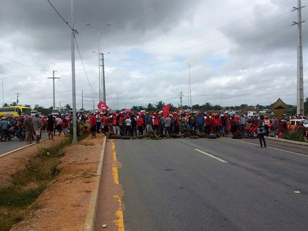 A obstrução acontece na rotatória que dá acesso ao aeroporto, segundo a assessoria de comunicação da Secretaria Estadual de Segurança Pública. A entrada e a saída do aeroporto estão fechados.