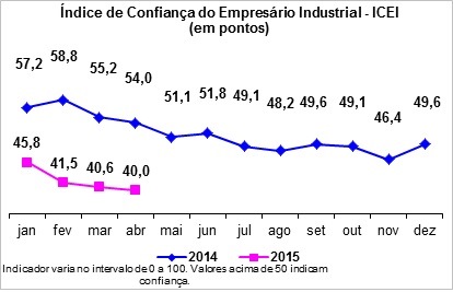 O Índice de Confiança do Empresário Industrial (ICEI) do Rio Grande do Norte passou de 40,6 para 40,0 pontos, mostrando que a falta de confiança dos empresários se acentuou entre março e abril.